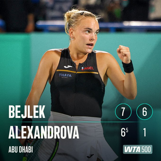 La checa Sara Bejlek escribió el capítulo más importante de su joven carrera al consagrarse campeona del WTA 500 «Mubadala Abu Dhabi Open» tras derrotar a la rusa Ekaterina Alexandrova, por 7-6(5), 6-1, logrando así su primer título individual en el WTA Tour.