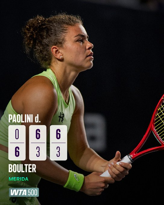 Por su parte, Jasmine Paolini lograría remontar ante Katie Boulter por 0-6, 6-3, 6-3, salvando tres puntos de quiebre y quedándose con nueve de los últimos diez puntos disputados para avanzar a su primera semifinal en el circuito WTA desde el pasado WTA 500 de Ningbo en octubre.