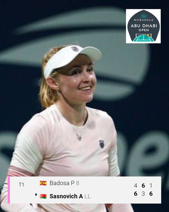 La tenista española Paula Badosa sufrió una eliminación inesperada en la primera ronda del WTA 500 Abu Dhabi (Emiratos Árabes Unidos), certamen que se juega sobre canchas de cemento. Badosa, quien partía como la octava cabeza de serie, fue derrotada por la bielorrusa Aliaksandra Sasnovich, quien accedió al cuadro principal como lucky loser, con marcador 4-6, 6-3 y 1-6 en dos horas de partido.