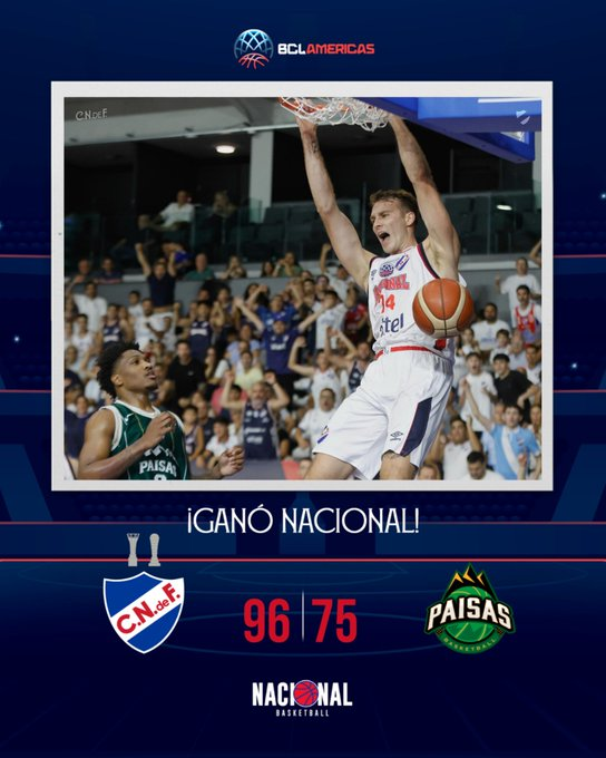 Nacional derrotó 96-75 a Paisas y logró su pase a Semifinales de la Basketball Champions League Américas 2025-26. En el Final Four, Nacional (URU) se enfrentará contra SESI Franca (BRA), mientras que en la otra llave se medirán el vigente campeón Flamengo (BRA) y Boca Juniors (ARG) en lo que será una reedición de la última Final.