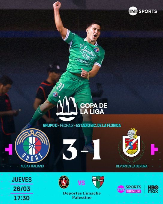 Por último en el Estadio Bicentenario de La Florida, Audax Italiano derribó a Deportes La Serena por 3-1 y se afianzó en el liderato del Grupo D de la Copa de la Liga, que desarrolla su segunda jornada.