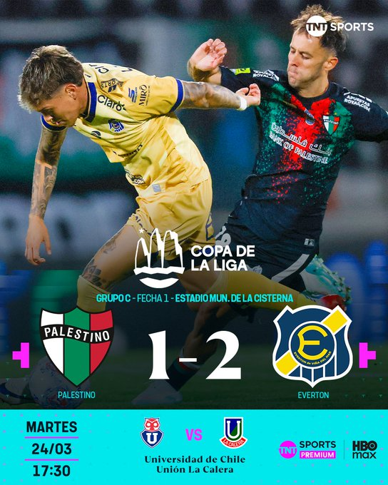 Este lunes concluyó la primera fecha de la Copa de la Liga y Everton se hizo fuerte como visitante y venció por 2-1 a Palestino en el Estadio Municipal de La Cisterna, en el encuentro que tuvo llegadas de principio a fin.