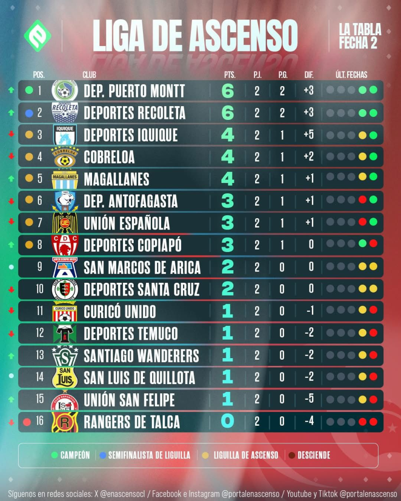 Con dos partidos este lunes se puso término a la segunda fecha de la Liga de Ascenso y Magallanes y San Marcos firmaron un empate 1-1, en el encuentro jugado en San Bernardo.