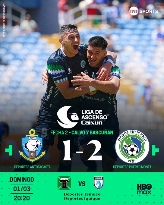 Dos partidos se jugaron este domingo en la continuidad de la Liga de Ascenso y Deportes Puerto Montt continúa con su gran inicio de temporada y derrotó por 2-1 a Deportes Antofagasta en el estadio Calvo y Bascuñán, resultado que le permitió alcanzar la cima junto a Deportes Recoleta.