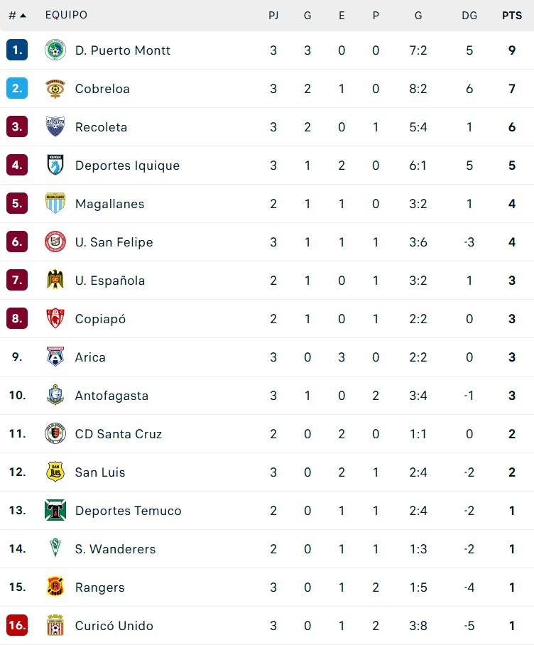 Con esta victoria, Puerto Montt suma 9 puntos y se instala como líder en el inicio del campeonato y Recoleta es tercero con 6 unidades. El Velero en la próxima fecha recib a Santa Cruz.