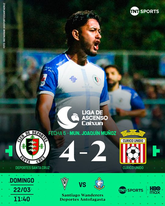 En el otro duelo sabatino, en el Estadio Municipal Joaquín Muñoz García, Santa Cruz goleó a Curicó Unido y marcó el batacazo de la fecha.
