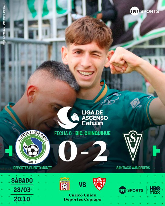 Tres partidos se jugaron ayer sábado por la Liga de Ascenso del futbol chileno y en el más importante Deportes Puerto Montt perdió por 2-0 frente a Santiago Wanderers en el Estadio Chinquihue, en un encuentro donde la expulsión de Ariel Morales condicionó el desarrollo del partido.