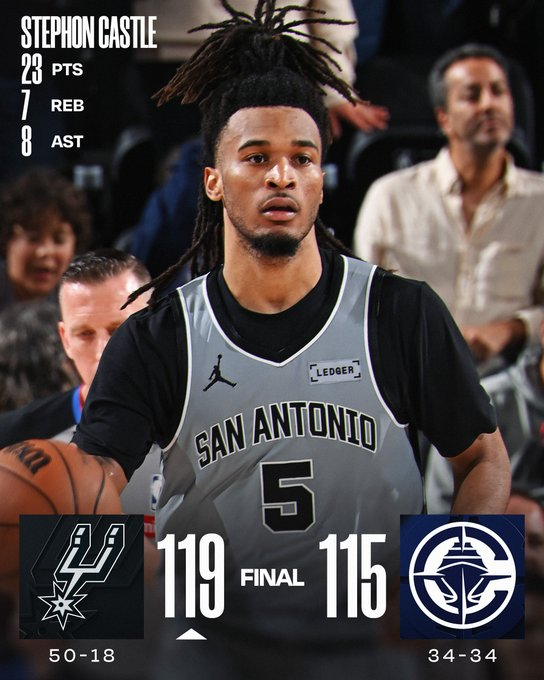 Victor Wembanyama sumó 21 puntos y 13 rebotes para los Spurs, que alcanzaron las 50 victorias por primera vez desde 2017. Stephon Castle lideró la ofensiva con 23 puntos, 8 asistencias y 7 rebotes, mientras Devin Vassell añadió 20. En Los Angeles Clippers, Darius Garland registró 25 puntos y 10 asistencias y Jordan Miller aportó 22 desde la banca.