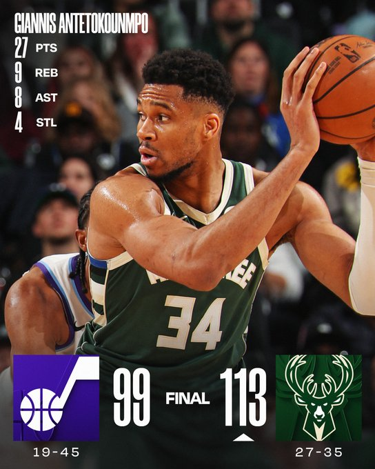 Milwaukee Bucks 113 – Utah Jazz 99