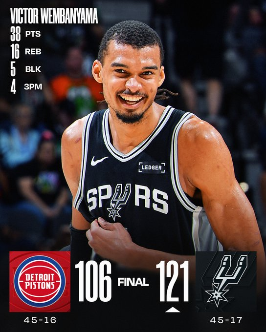 San Antonio Spurs 121 – Detroit Pistons 106