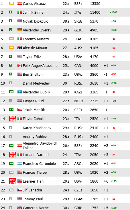 El murciano defendió sus puntos de semifinales de 2025, sin ceder unidades en la clasificación, pero ha visto cómo su distancia en la cumbre se ha visto recortada debido al triunfo de Jannik Sinner. La estelar actuación del italiano en el desierto, completando su currículum de grandes títulos en pistas duras, ha tenido más consecuencias que varias hazañas históricas: suma 1000 puntos bien frescos que le colocan ahora a una distancia mucho menor de su gran rival, concretamente 2150 puntos.