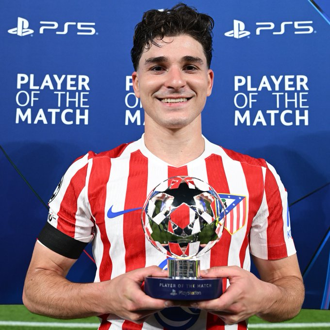 Jugador del Partido PlayStation®: Julián Alvarez (Atleti): «En partidos como este, en los que los equipos se conocen tan bien, alguien tiene que crear uno o dos momentos especiales. Julián marcó un gol de falta mágico».
