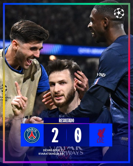 El Paris Saint-Germain venció al Liverpool 2-0 en el partido de ida de los cuartos de final de la UEFA Champions League. Los vigentes campeones se impusieron gracias a los goles de Désiré Doué y Khvicha Kvaratskhelia ofreciendo una gran imagen y una superioridad aplastante.