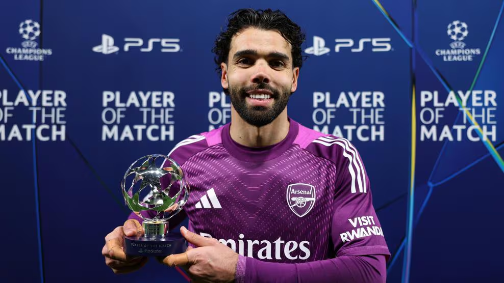 Jugador del Partido PlayStation®: David Raya (Arsenal) «Ofreció una actuación de gran nivel. Fue fundamental para que el Arsenal mantuviera su portería a cero, se mostró muy atento y seguro, y realizó una parada que se convirtió en uno de los momentos clave del partido para el Arsenal».
