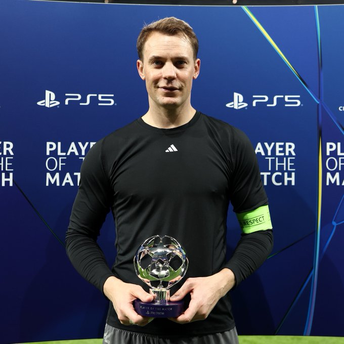 Jugador del Partido PlayStation®: Manuel Neuer (Bayern) «Serenidad. Decisivo en los momentos clave con paradas muyimportantes y sobresaliente en situaciones de uno contra uno».+