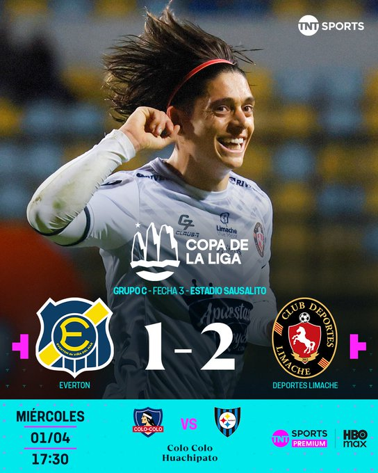 En el otro duelo del martes, en el Estadio Sausalito, Deportes Limache lo dio vuelta por 2-1 ante Everton de Viña del Mar y sumó de a tres por primera vez en la Copa de la Liga, que desarrolla su tercera fecha.