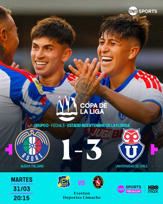 Dos partidos se jugaron este martes en la Copa de la Liga y  Universidad de Chile se reencontró con los abrazos y cosechó su primera victoria de la mano de Fernando Gago, tras derrotar por 3-1 a Audax Italiano en el estadio Bicentenario de La Florida, resultado que le permitió tomar un respiro en el Grupo D.