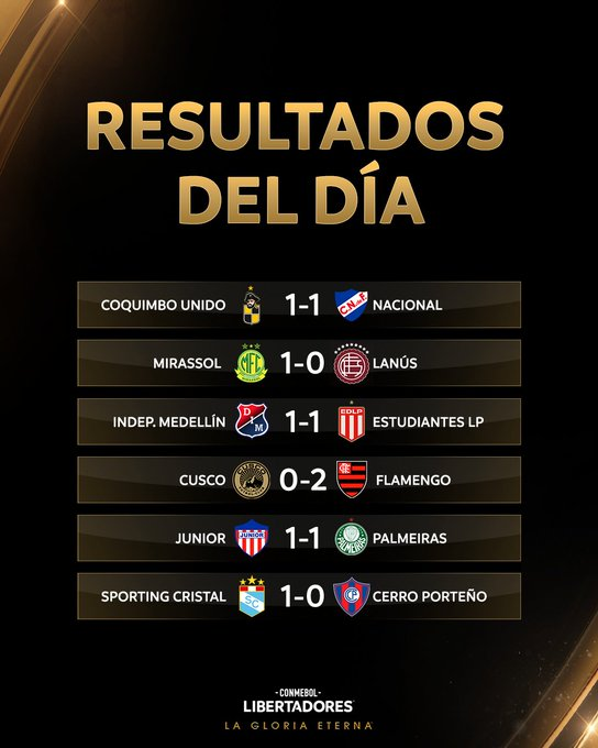 Fue 1-.1 en el Estadio Francisco Sánchez Rumoroso ante Nacional de Uruguay. Revisamos todos los resultados del miércoles.