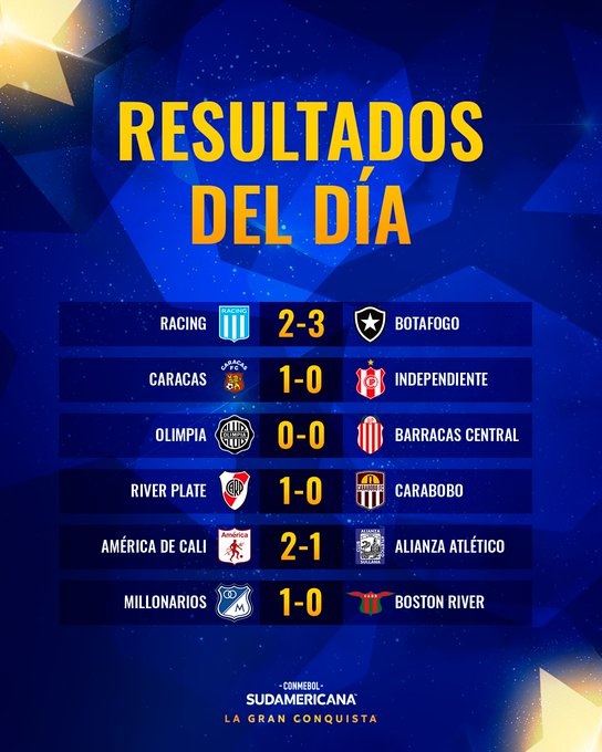 Por su parte Racing volvió a pagar caro sus errores y perdió de local con Botafogo. Revisamos todos los resultados del miércoles