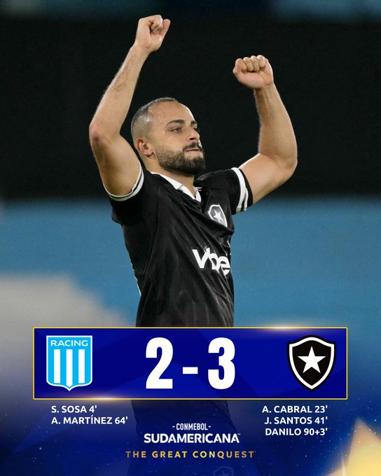 En tanto luego de la dolorosa derrota ante River, Racing volvió a pagar caro los errores defensivos y cayó sobre la hora por 3-2 ante Botafogo en el Cilindro a puertas cerradas por la segunda fecha del Grupo D de la Copa Sudamericana.