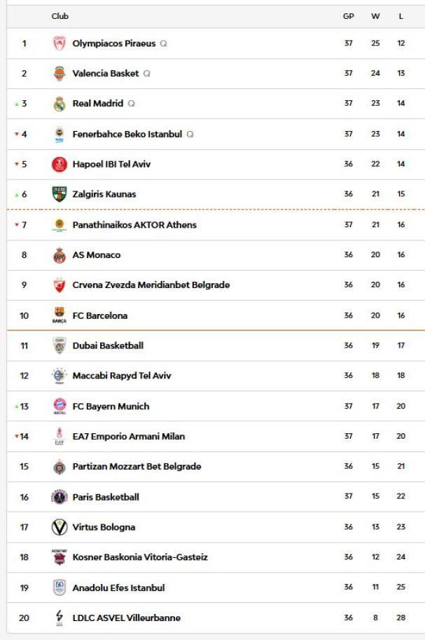 Comenzó la jornada 37 de la fase regular de la Euroliga que incluyó cinco partidos hoy jueves y cinco más mañana viernes y que será decisiva en la lucha por los playoffs, con varios enfrentamientos entre rivales directos. Esto es lo que ocurrió este jueves 9 de abril