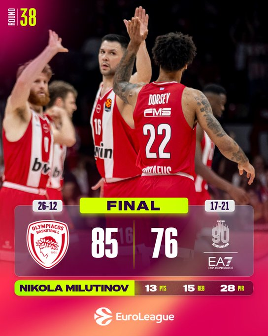 Tras conseguir su undécima victoria consecutiva en casa, el Olympiacos mejoró su récord como local a 26-12. Mientras tanto, el Milan sufrió su cuarta derrota consecutiva, cayendo a 17-21. Vezenkov lideró al Olympiacos con 20 puntos y Dorsey anotó 18, mientras que Nikola Milutinov combinó sus 13 puntos con 15 rebotes, su mejor marca de la temporada. Shavon Shields fue la máxima anotadora con 24 puntos, pero no fue suficiente para que los visitantes se llevaran la victoria.
