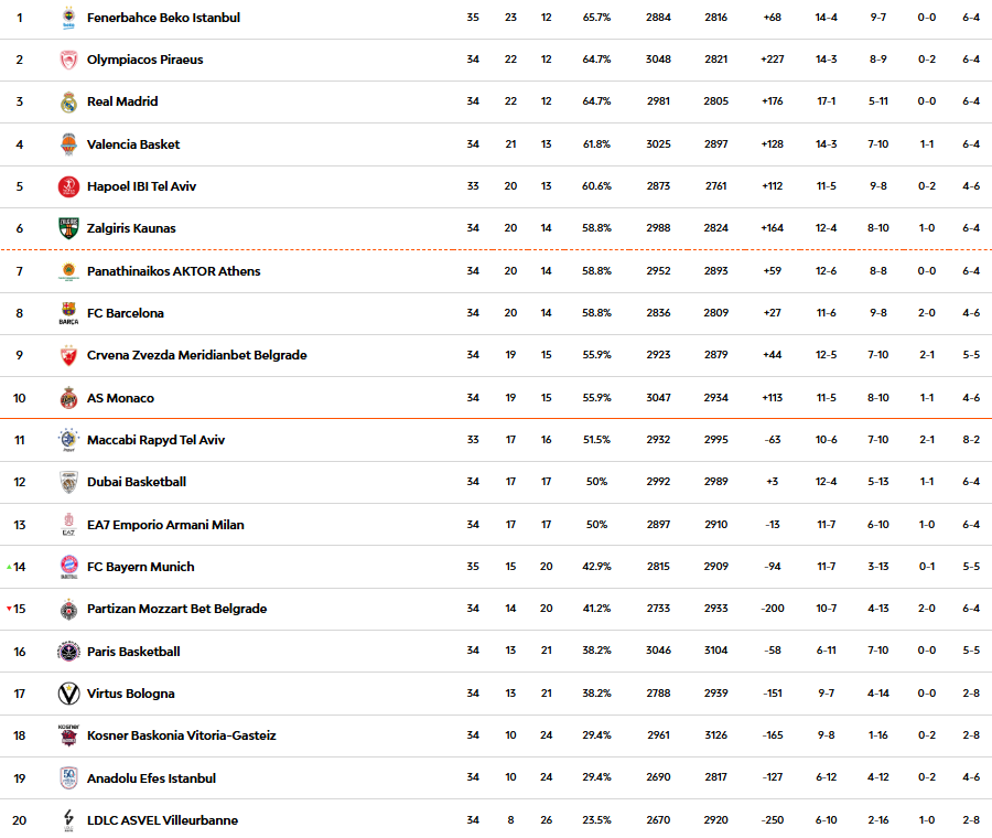 Tras conseguir su segunda victoria consecutiva en casa, el Bayern mejoró su récord a 15-20. Mientras tanto, el Fenerbahçe sufrió su quinta derrota en los últimos seis partidos, cayendo a un récord de 23-12.