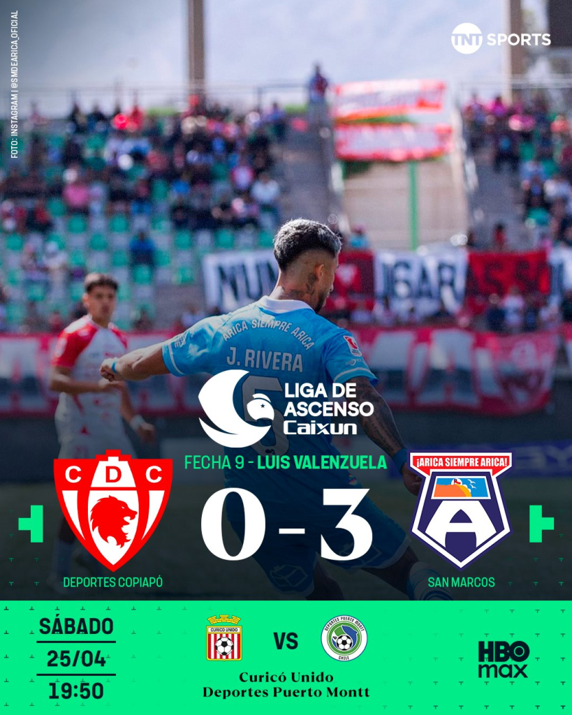 Horas antes San Marcos de Arica celebró un gran triunfo por 3-0 en su visita a Deportes Copiapó, por la novena fecha de la Liga de Ascenso, y obtuvo el liderato exclusivo.