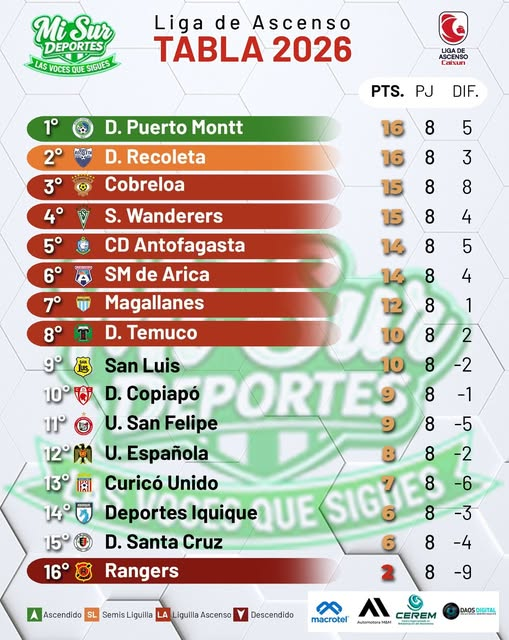 Con este resultado, el elenco sureño alcanza los 16 puntos y se instala como líder del campeonato, superando por diferencia de gol a Deportes Recoleta. Por su parte, Deportes Temuco queda en la octava posición con 10 unidades, manteniéndose en la zona media de la tabla.
