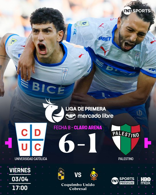 Como local U. Católica apabulló 6-1 a Palestino en la previa de su debut en la Copa Libertadores y abriendo la octava fecha