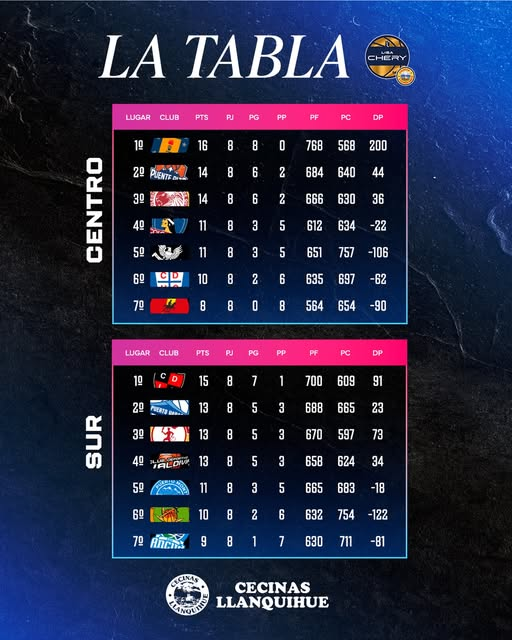Esta paridad deja al equipo lacustre a dos unidades del exclusivo líder, CD Las Ánimas, que se consolida en la cima con 15 puntos tras estirar su racha positiva. Por debajo de la zona de escoltas, Puerto Montt Básquet, CD Castro y ABA Ancud cierran la clasificación, lo que obliga al quinteto de Damián Gamarra a sumar en sus próximos desafíos para no perder terreno en la lucha por la clasificación directa.