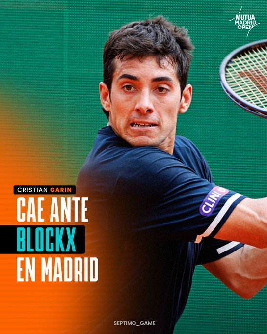 Cristian Garin (85°) dijo adiós al Masters 1.000 de Madrid luego de caer este jueves ante el belga Alexander Blockx (69°) en un partido donde tuvo sus chances para quedarse con la victoria, pero que las terminó desperdiciando ante el repunte del europeo.