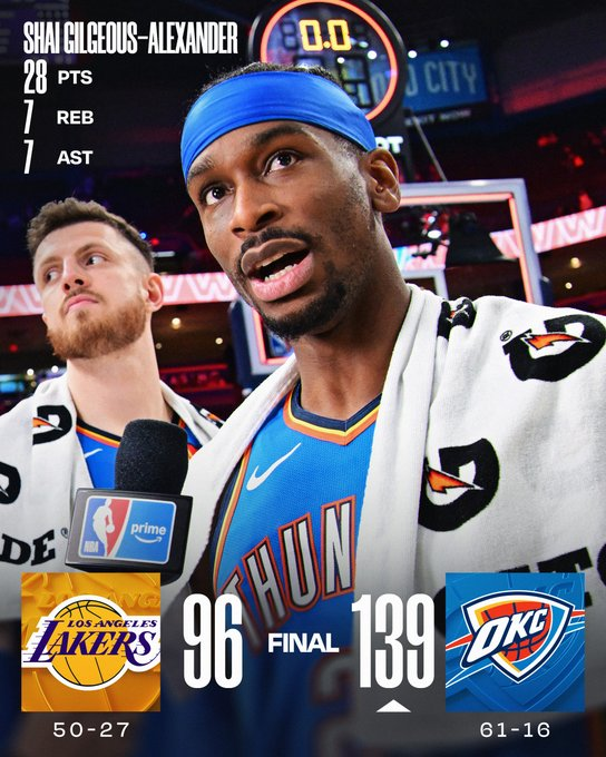 Oklahoma City 139 – LA Lakers 96