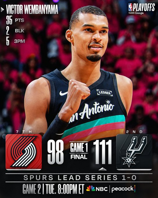 En tanto San Antonio Spurs comenzó su camino en los playoffs con una sólida victoria por 111-98 frente a Portland Trail Blazers en el Juego 1, apoyado en una actuación dominante tanto en defensa como en ataque. En un Frost Bank Center colmado, el equipo local impuso condiciones desde el inicio y dejó en claro por qué es uno de los equipos a seguir en la Conferencia Oeste.