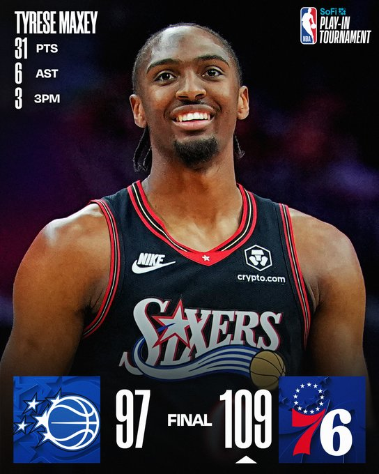 Con Tyrese Maxey imparable Sixers superó 109-97 a Orlando y se clasificó a la postemporada, donde lo espera Boston en tanto Warriors sobre el final derrotó a Los Ángeles Clippers y sigue soñando con un Steph Curry determinante