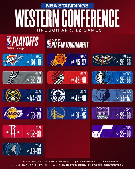 Lo otro que quedaba por definir era quién se quedaba con el octavo lugar del Play-In, clave porque otorga una chance más de ingresar a la primera ronda. Los Angeles Clippers y Portland Trail Blazers se disputaban ese puesto y ambos ganaron; sin embargo, fueron los Blazers los que terminaron entre los ocho mejores tras vencer a los Kings, con un gran partido de Deni Avdija (25 puntos y 10 asistencias). Los Clippers vencieron a los Warriors (destacado aporte de Bennedict Mathurin con 20 puntos), pero no les alcanzó. Golden State Warriors y Los Angeles Clippers se volverán a enfrentar en el Play-In.