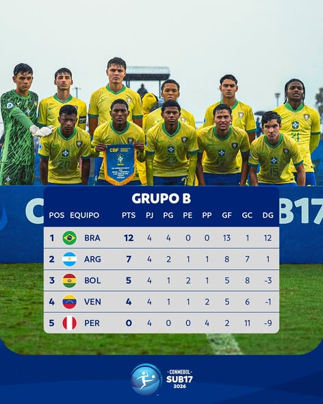En el Grupo B, Argentina igualó 1-1 ante Bolivia, mientras que Brasil ganó 1-0 a Venezuela. El empate le alcanzó a la Albiceleste para asegurar su clasificación a la Copa Mundial Sub17 de la FIFA Catar 2026 y mantenerse en la lucha por el título.