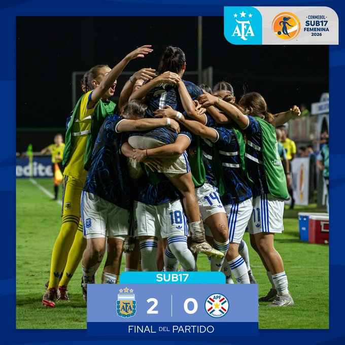 Argentina venció 2-0 a Paraguay en la primera jornada de la Primera Fecha de la CONMEBOL Sub17 Femenina 2026, en encuentro disputado en el Estadio CARFEM de Ypané.
