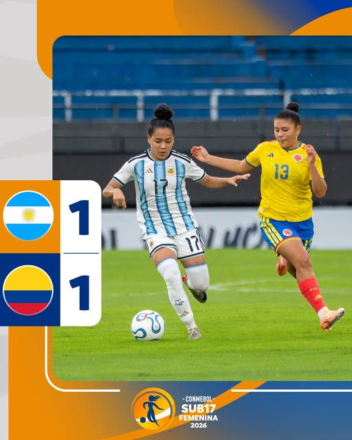 Argentina y Colombia igualaron 1-1 en el encuentro disputado en el Estadio Defensores del Chaco, por la primera jornada de la Fecha 2 de la CONMEBOL Sub17 Femenina 2026.